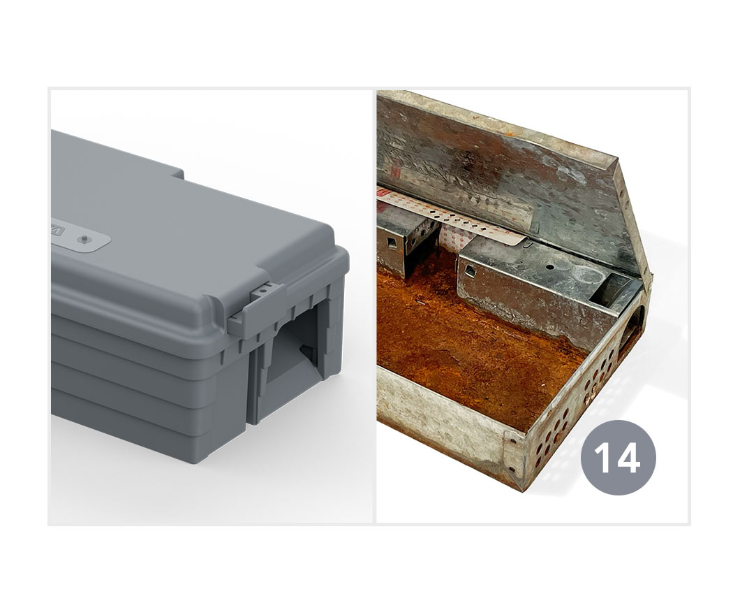 The multi-catch station—modernized. The EZ Kat® multi-catch station from the VM Innovation Lab features a low-profile deadfall design with built-in commitment ramps that enable multiple catches of mice and insects. It’s made of durable plastic that eliminates the rust and sharp edges that can be found with traditional multi-catch stations. Plus, it helps your team save time with unique features that allow for quick, easy opening and servicing.