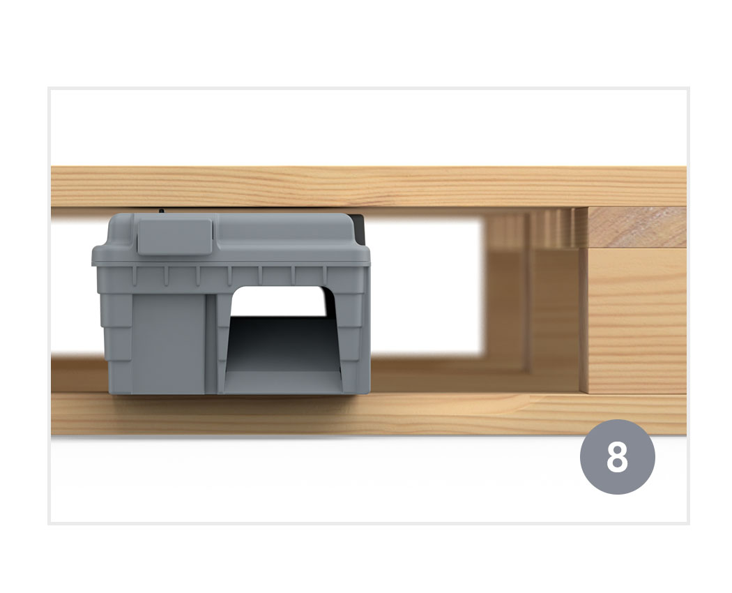 Guide wall prevents the rodent from going behind the station, leading it inside instead.