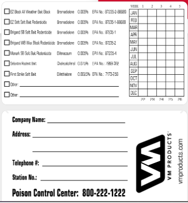 Second – tracking. Say you have an account where stations keep going missing. Finding them somewhere else on the property or inside the account lets you know that they are, in fact, your stations. This is particularly helpful with new accounts that may have leftover equipment from the last service provider. It also quickly identifies what it is and to whom it belongs. Stations can get thrown away by well-meaning employees who don’t know what they are and think they are trash. Additionally, it makes it easier to record data and rodenticide use. Since all the stations are labeled, the documentation can be easily entered for each station.