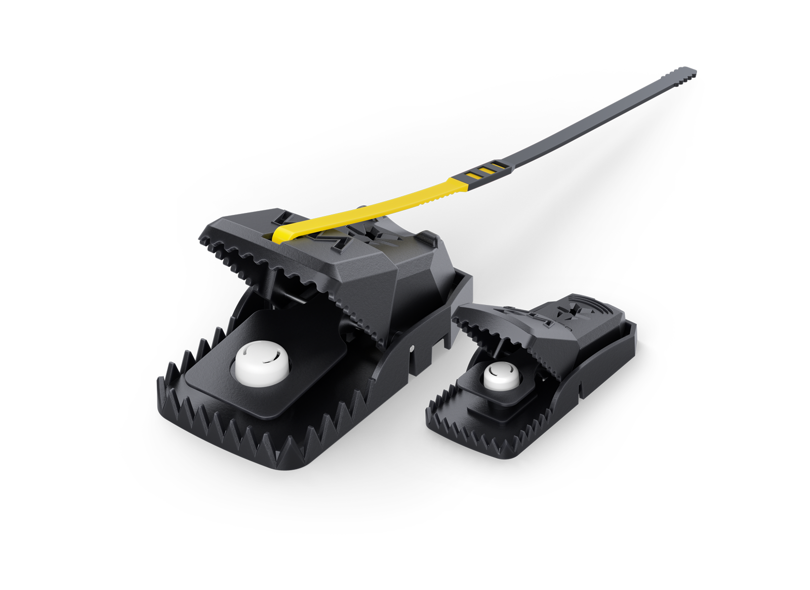 The indicator is yellow when the trap is set and black when it has a catch.